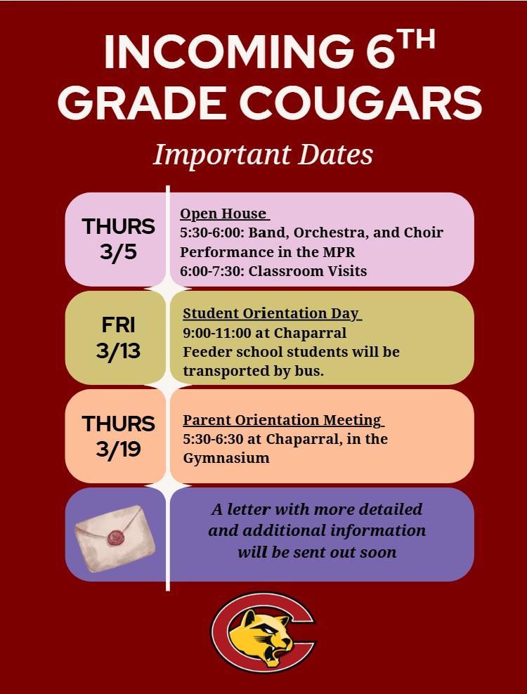 Important Dates for Incoming 6th Graders